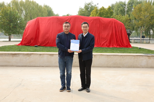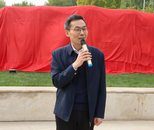 仪式上,张亚为校友包鹏飞颁发捐赠证书并赠送纪念品,参会领导共同为景观石揭幕。