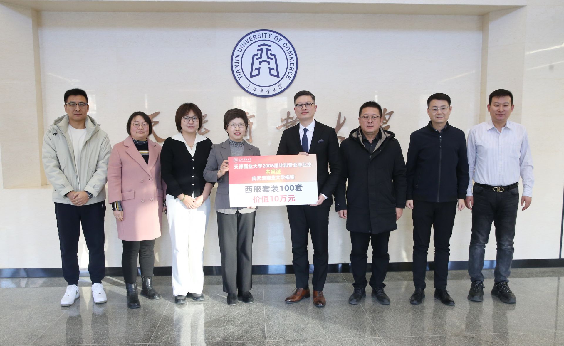 木忠诚回顾了在校求学的美好时光,介绍了自己的奋斗历程和公司的发展情况,并表达了对母校的感激之情和美好祝愿。他此次回馈母校捐赠100套西服套装,为学弟学妹们迈向职场助力,为母校人才培养添彩。
