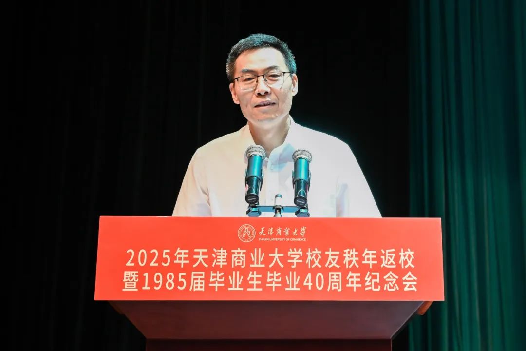 张亚代表学校对各位校友的到来表示热烈欢迎,向各位老教师致以崇高敬意和诚挚问候。他指出,7月11日是学校历史上首次毕业典礼举行的时间,也是学校校史馆落成开馆时间,1985届校友在这一天重返“出发地”更有纪念意义。咸阳路南院区是校友们曾经学习生活的地方,学校通过有效盘活,正在建设“天商数字商务科创园”。他表示学校高度重视校友工作,每年成建制地邀请毕业生重返母校,举行校友秩年返校活动,同时在校内积极培育校友文化,激发全校师生能够更加关心关注校友和校友群体,更加重视校友工作。希望广大校友一如既往为学校建设发展添砖加瓦、献计出力。学校将进一步加强校友组织体系和运行机制建设,完善基础工程,厚植校友文化,突出与校友的交流互动和全面合作,以更贴心周到的服务,凝聚校友力量,高质量推进特色鲜明高水平商业大学建设。
